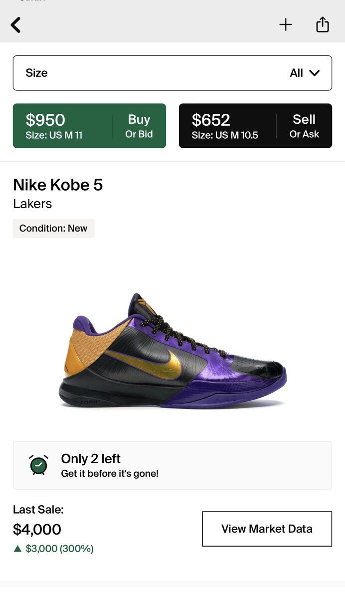 To all the sneaker head experts, I have a Kobe 5 “Lakers Away” (size 10.5) in mint condition (only used it once, very lightly for few hrs, and went straight back to its box