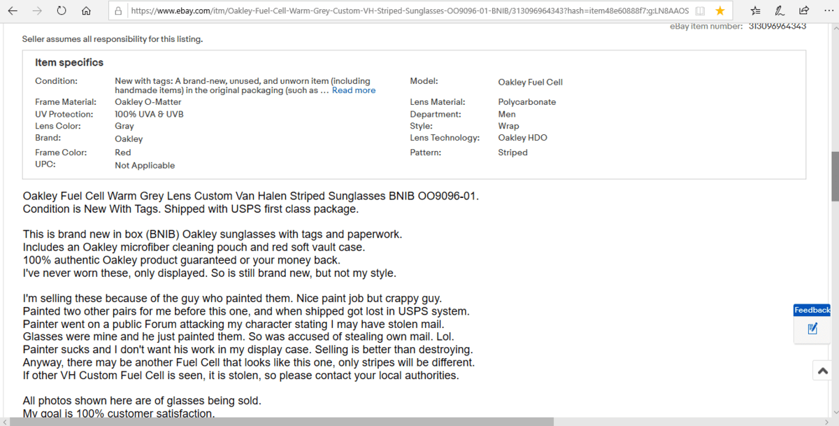 Oakley Fuel Cell Warm Grey Lens Custom Van Halen Striped Sunglasses BNIB OO9096-01. Includes an Oakley microfiber cleaning pouch and red soft vault case. Anyway, there may be another Fuel Cell that looks like this one, only stripes will be different.www.ebay.com
