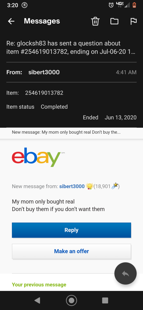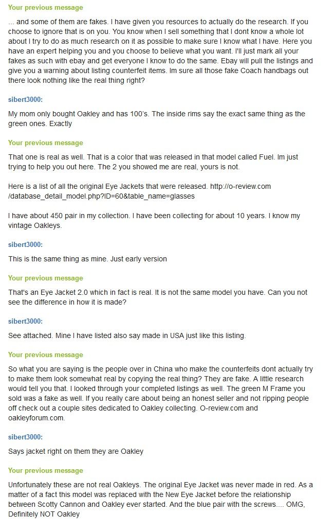 We write back and forth. Then I tell him that he should bring his glasses to an Oakley store and let them confirm the authenticity. Then he says he's calling Oakley now.Now that is committed![]()