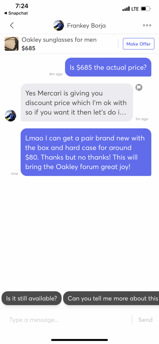 the description is priceless. he is not just selling the sunglass, the good luck charm as well
