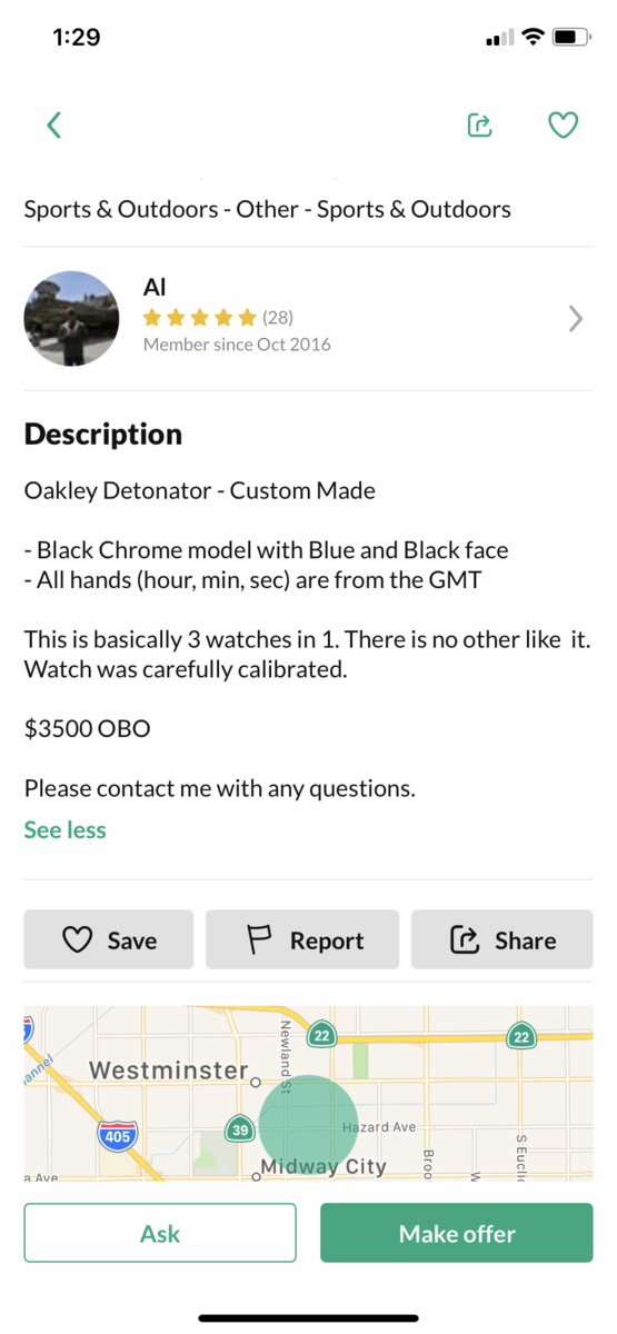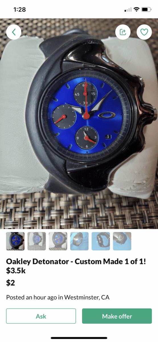 My apologies if this is someone on this forum. I usually don’t care if someone has something overpriced. I just move on. But In this case, since it’s so high and ridiculous I’m wondering if he is being serious or if it’s a joke ad. $3500 for a custom job Detonator watch? Or maybe I’m missing something???