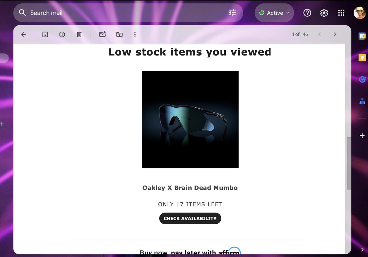 Just 48 hours..... that's like a pregame warm up. Long way to go grasshopper.I haven’t gotten shipping info from Oakley on my Mumbos been almost 48 hours
