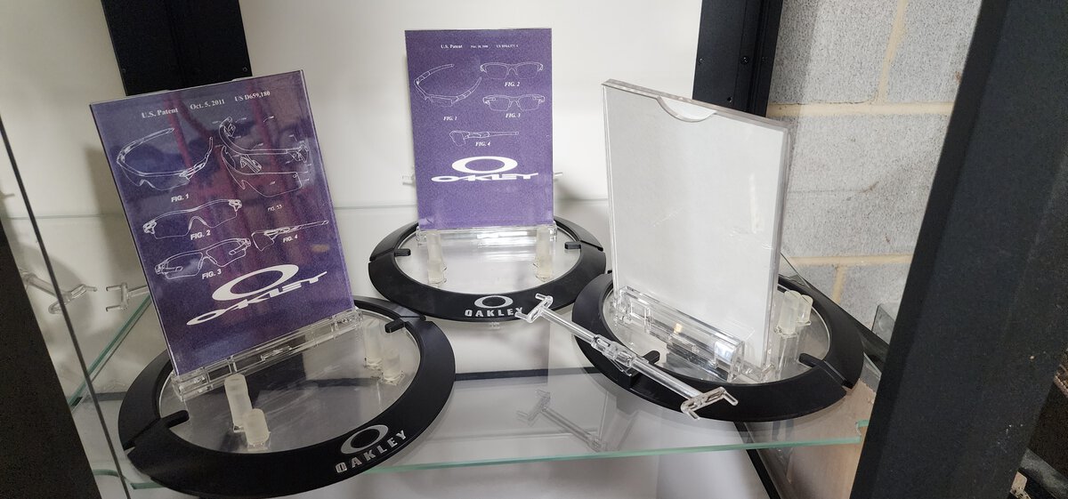 Hard to find Jawbone/Radarlock frame and lens display racks - (I printed out the patent signs) $60 each