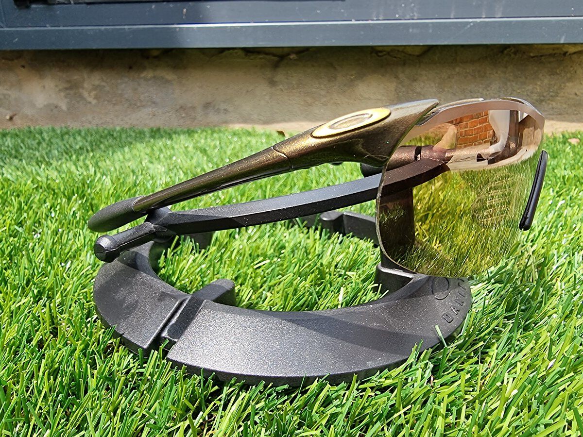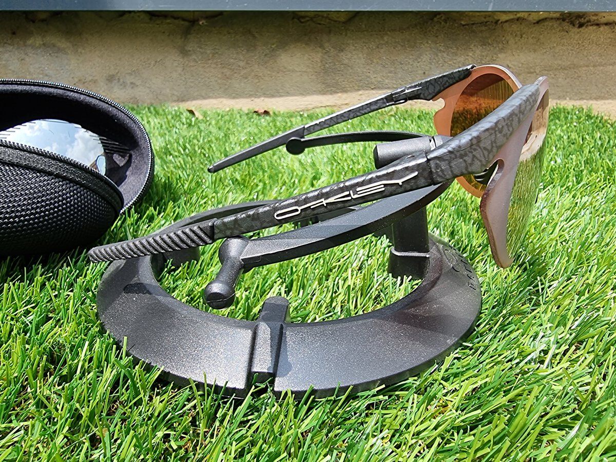 This one has a PRIZM Snow Black iridium lens with custom frosting. Stems are stock N2T Plant X, and earsocks are brand new OEM. This one comes with the original lens too, but note this shows its age with a couple big scratches on the iridium. Will come with a microbag and softvault.