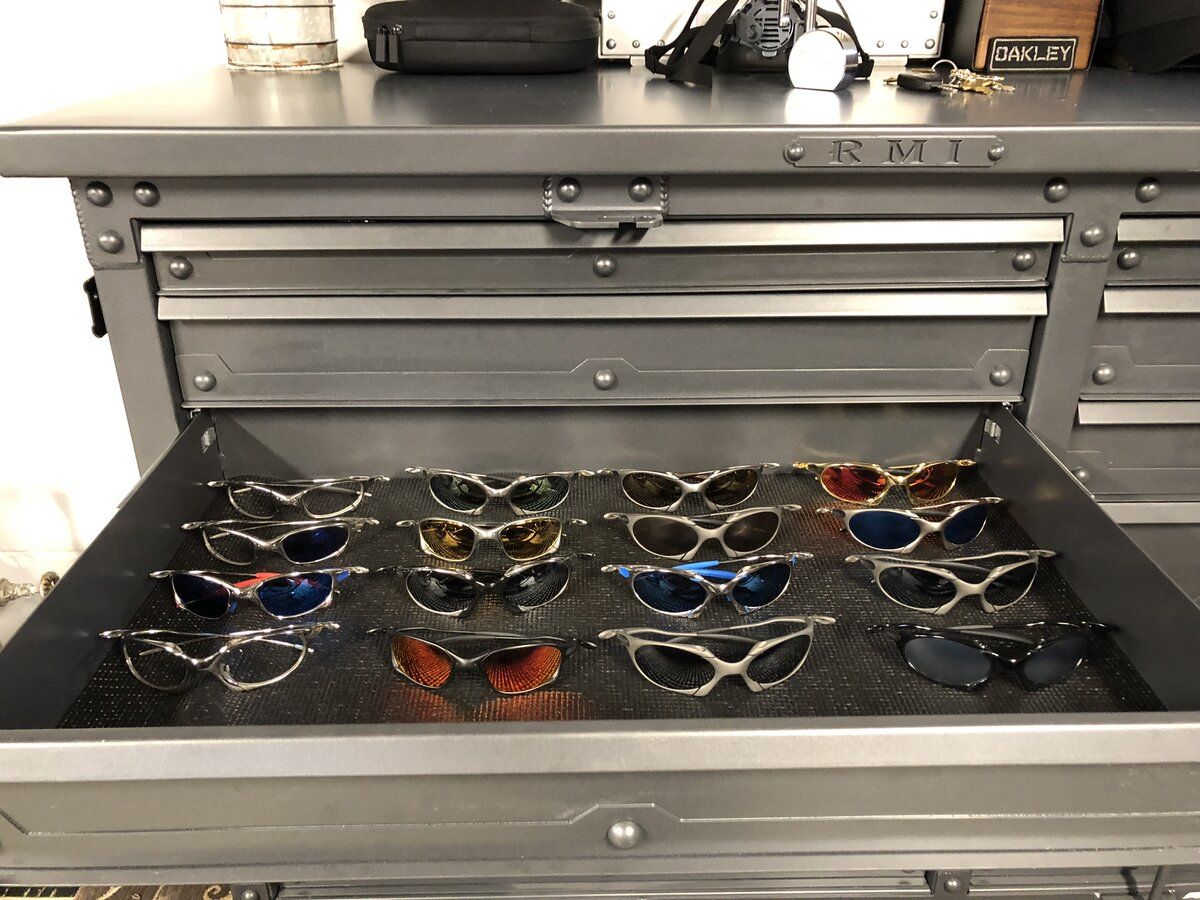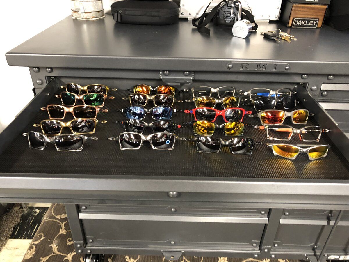 Honestly I don’t know anymore, have a lot new still in the boxes tucked in the bottom drawers had to buy a rhino metal works tool box to fit them all in though. Ran out of room in there and had to buy an oakley tower. Sold a few pair since this pic tho