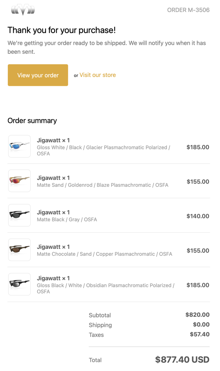From FOMO, I picked up a Matte Storm / Shadow / Amethyst as well. So far, they are the most popular, with only 5 left as of writing. I like Chocolate / Sand / Copper the most. Matte Sand / Goldenrod / Blaze should've come with Gold lenses IMO, but they will look amazing with that lens swap. Can't wait to rock Gloss Black as my daily. I hope you all get what you want! Call me when they drop their first MAD frame
