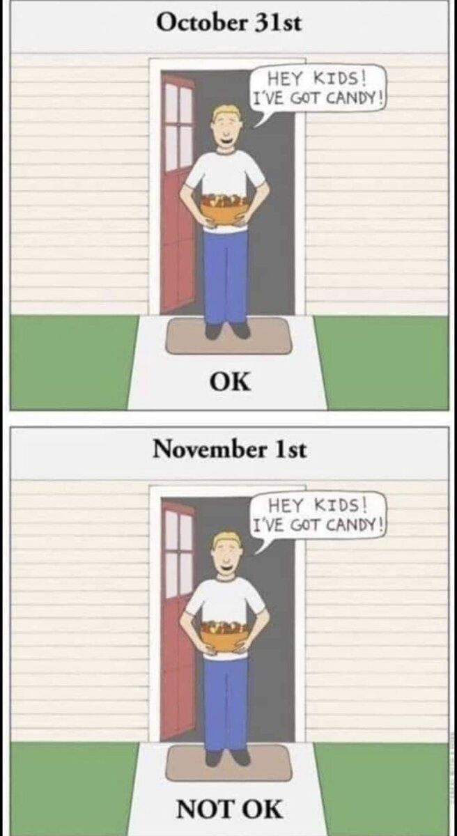 Tom. A fresh start 11,986 7,923 Europe 11/3/21 #997 Kingme said: View attachment 914285Just a reminder lol Click to expand... So you are saying it's okay on Oct. 31? . .