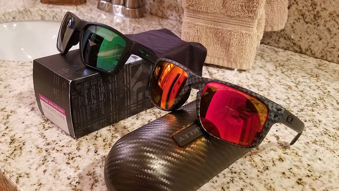 So i ended up visiting the Oakley store in Vegas on Thursday. i intended to just buy a shirt, but after trying on the Targetline i ended up buying the Prizm Jade Polar pair. i really liked the fit they had with my hat. i love Holbrooks, but these fit much better with a hat due to stem shape and the frame shape on the orbitals. the lenses are larger vertically than Holbrooks. i took a couple pics side by side with a Holbrook so you can see the size comparison. i was also surprised they came with a carbon case, i wasn't expecting that. I'm not sure if all pairs come with the case or just the Polar pairs.