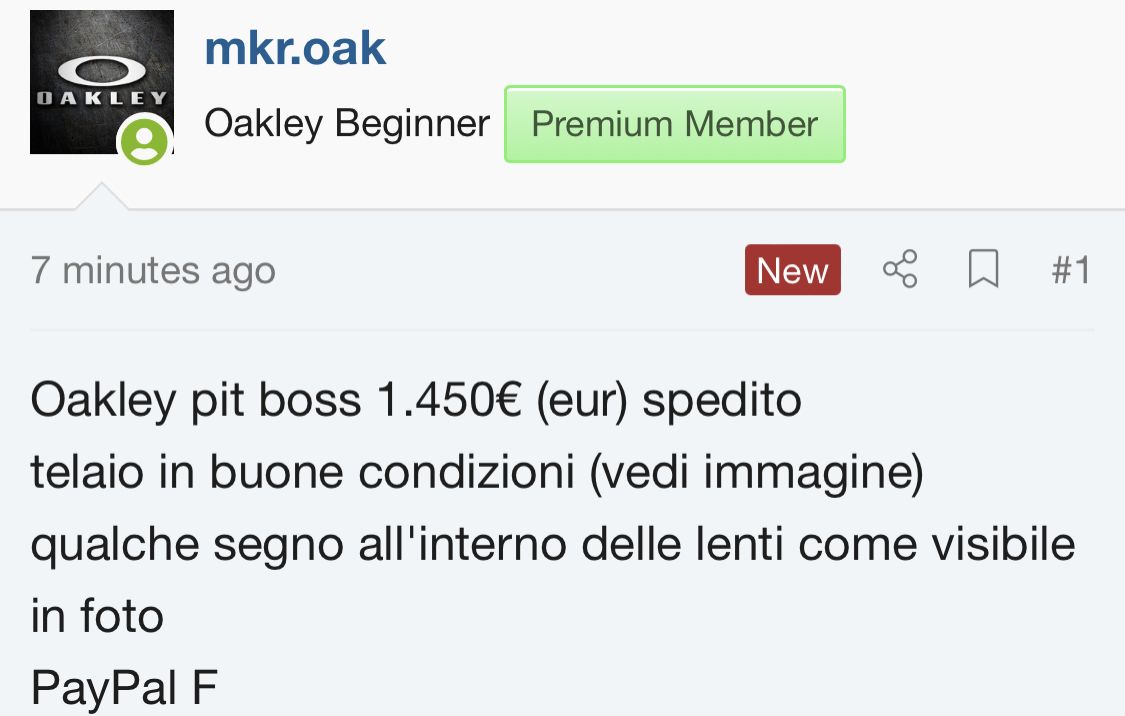 For Sale Oakley pit boss1 - 400€ (eur) shipped
