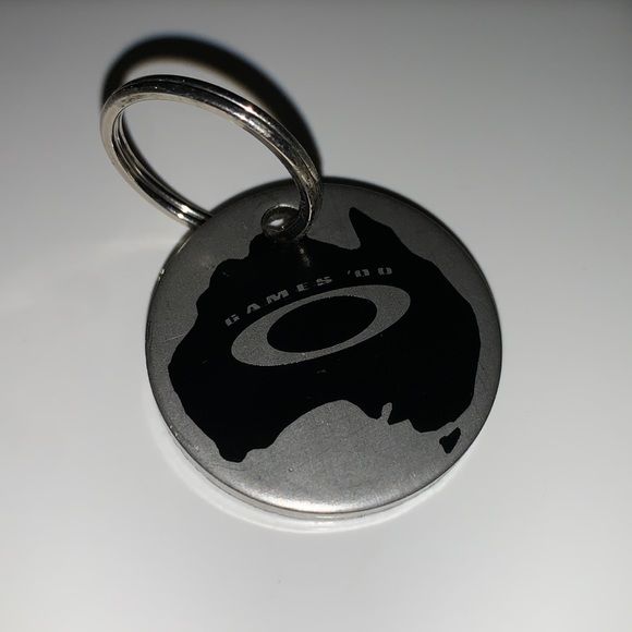 These keyrings were given to athletes and employees at the Sydney 2000 games to access the Safe House. The number on the back was used to set up transportation from the Bondi Junction Station to the Safe House on Bondi Beach. Oakley partnered with Volvo Australia, who provided the vehicles for the shuttle.