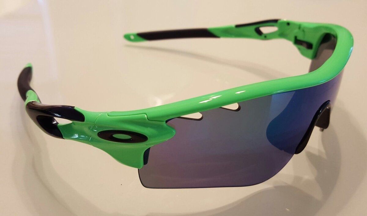 While these releases were not exclusive to athletes or through the Safe House, athletes did use modified versions to meet the IOC's Rule 50. Here's a pic of Rafal Majka wearing Green Fade Radar EV's that do not have the Oakley logo on the center of the lens. Flak 2.0's on the other hand, have the logo across the bridge.
