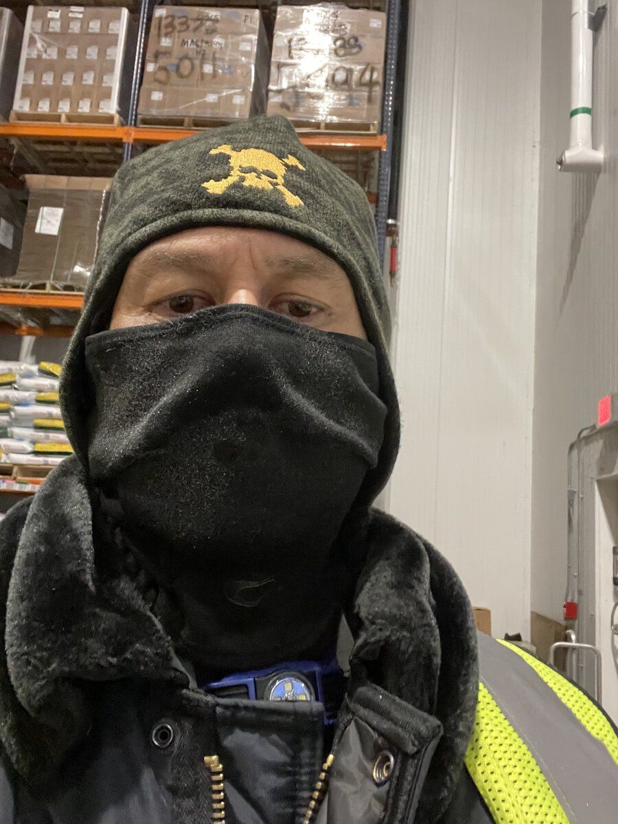 I have an Oakley cloth face covering under the beanie. and I'm wearing 2 t-shirts, 3 sweaters, and that jacket in the photo. And 2 jeans and 2 socks. And I can only last a few minutes. Perhaps 15-20 minutes at a time. Did not give a rip about style. Lol.