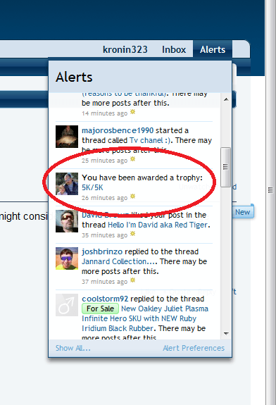The trophy for having both 5000 posts and 5000 likes. I was thanking everybody for all the likes.