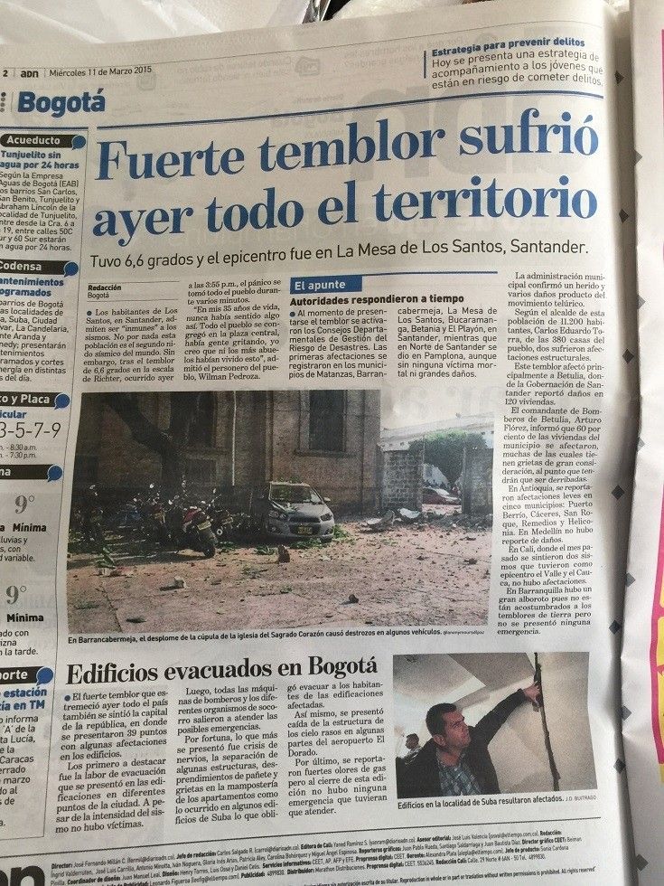 this 6.2 (or 6.6 as reported in the paper) hit 170 miles northeast of Bogota, but it shook this massive building like crazy...