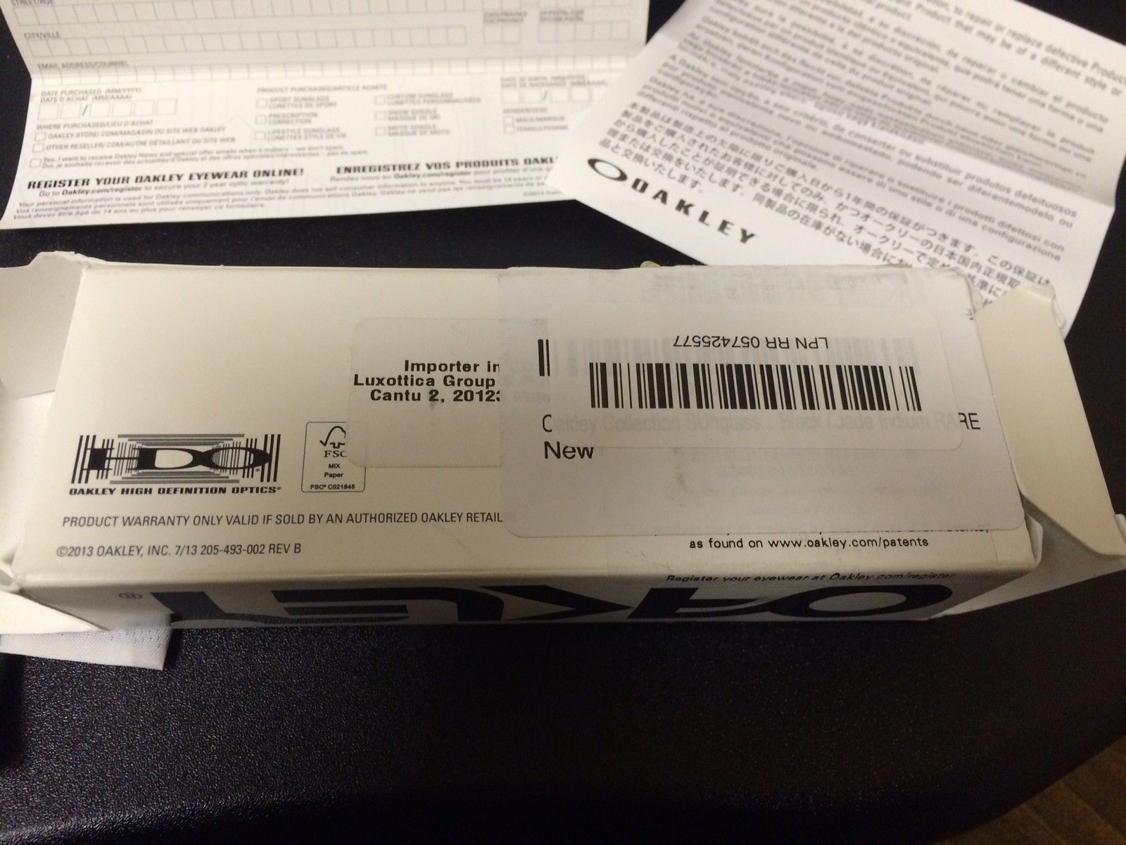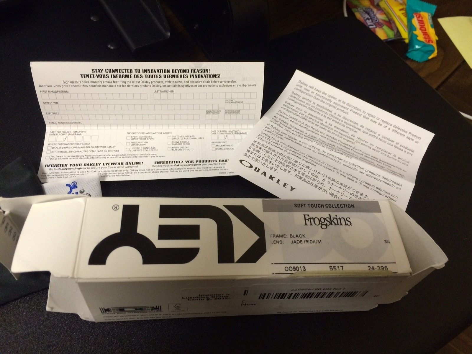 Bought a pair of Frogskins and not sure if they are authentic, new to collecting these, so your help is much appreciated. After reading here some, it sounds like they are authentic. One thing that gives me pause is that there is a UPC sticker on the box that says Oakley Collection SUnglasses...Black/Jade Iridium RARE, just like that. Weird capitalization and doesn't feel authentic, but it could've been a tag the reseller put on. Take a look and let me know what you all think? Thanks