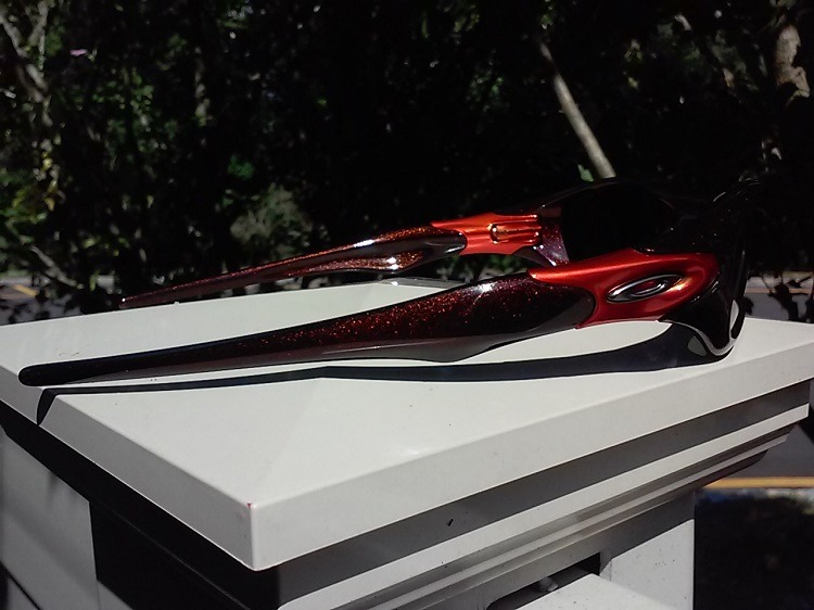 Awesome job manVery carefully and just very, very lucky. I figured I didn't really have anything to lose seeing as how it was getting painted anyway. So I closed my eyes and shot some candy orange over it, to see what would happen, and that's what it came out like. It was a matte black frame with silver script.