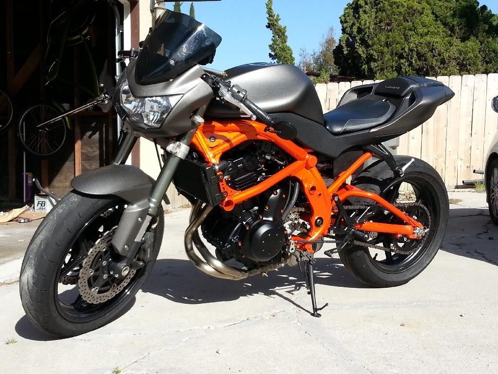 It's a 2006 ninja 650r. Not much stock left on the bike tho aside from about half of the frame and some of the engine. Pic of it from about a year ago. It's a little different now but just a few things. Shorter windscreen different exhaust few other bits. I should probably get around to taking some better pics of it. Heres a video walk around of it from awhile ago.