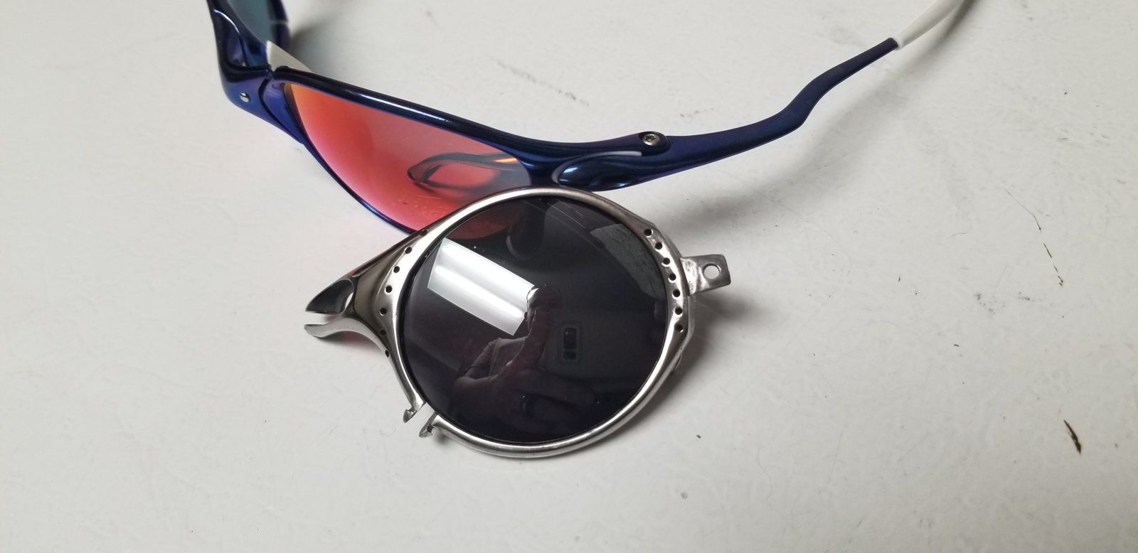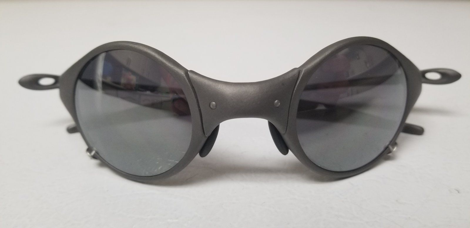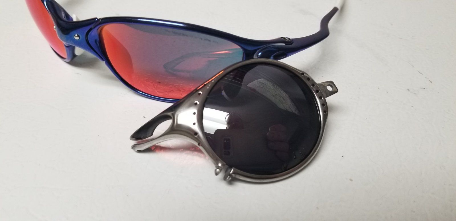 I think there are alot of uneducated (oakley uneducated) people out there that pick up customized frames and are told they are either prototypes or a rare colorway. This seller could possibly believe they are a legitimate prototype but we all know someone just sanded this rough like and wiped some mother polish over the frame. Lol.