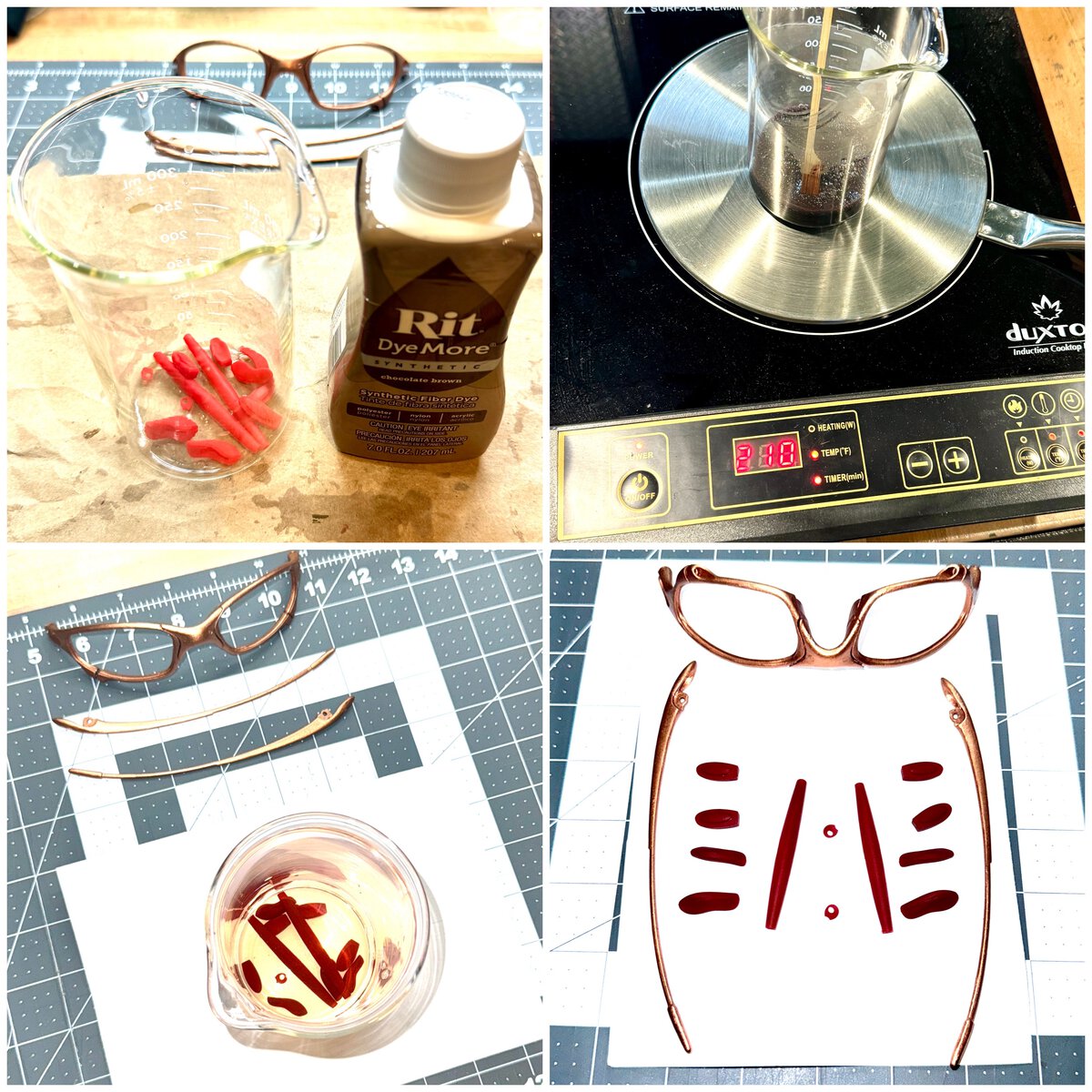 Boiled the Linegear Bright Red Rubber Set in Chocolate Brown Rit Dye for an hour. Rinsed it off in clear water. Then let it set in vinegar for a bit.