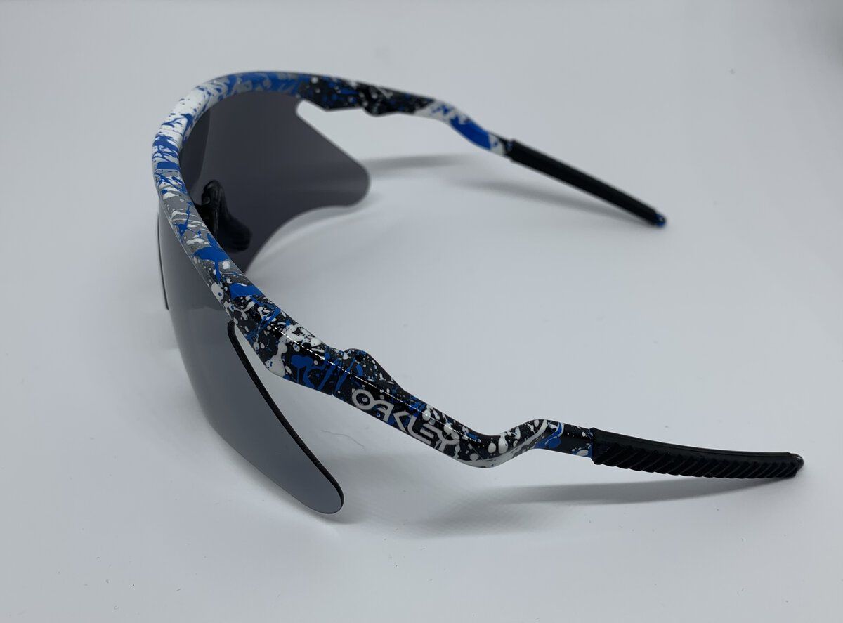 I ended up seeing this ad posted and saw the Juliet's and had to go for it. I'm not a collector of the M frames, but it did look unique. There is a "Made in USA" stamp on the top of the right arm. Looked through O-Review and didn't see anything that matched. I figured I would just grab the Razor Blades and Eye Jackets because of the old logo on the microfiber bags. The rubber on all the pairs is very good and not sticky or loose at all. All of this for under $100. The person I bought these from mentioned that he had a friend who worked for Oakley and designed the original frames. He also sent him a pair every year while he was working for the company. If anybody has any info on the M Frame Heater let me know!