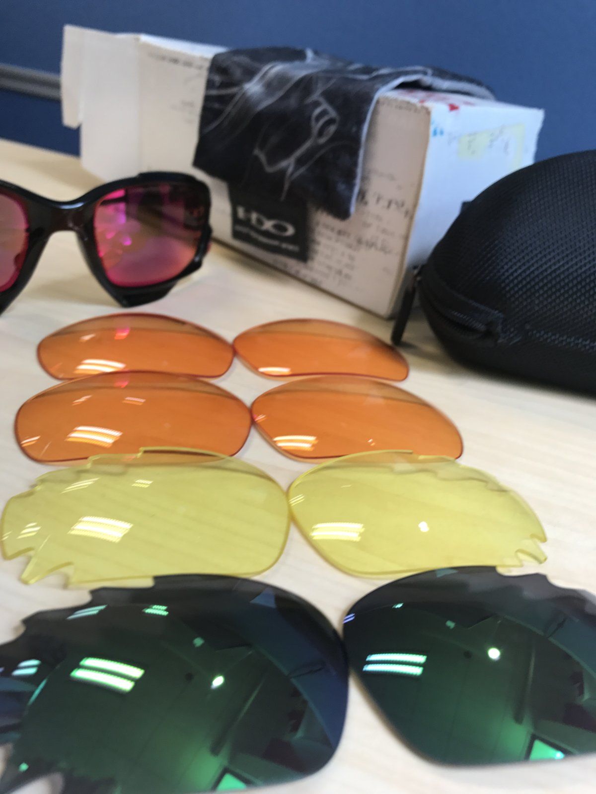 Selling with all lenses. The Jade ones have the smallest marks. I think coz I left them in box and they rattled against the Jawbones. The others are unmarked and unused. I've not used the jade ones either.