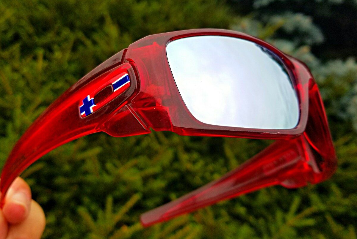 Kul briller. Elsker de!Custom Candy Red on a previously Polished Clear Fuel Cell with Fuse Chrome and Norwegian flag icons.