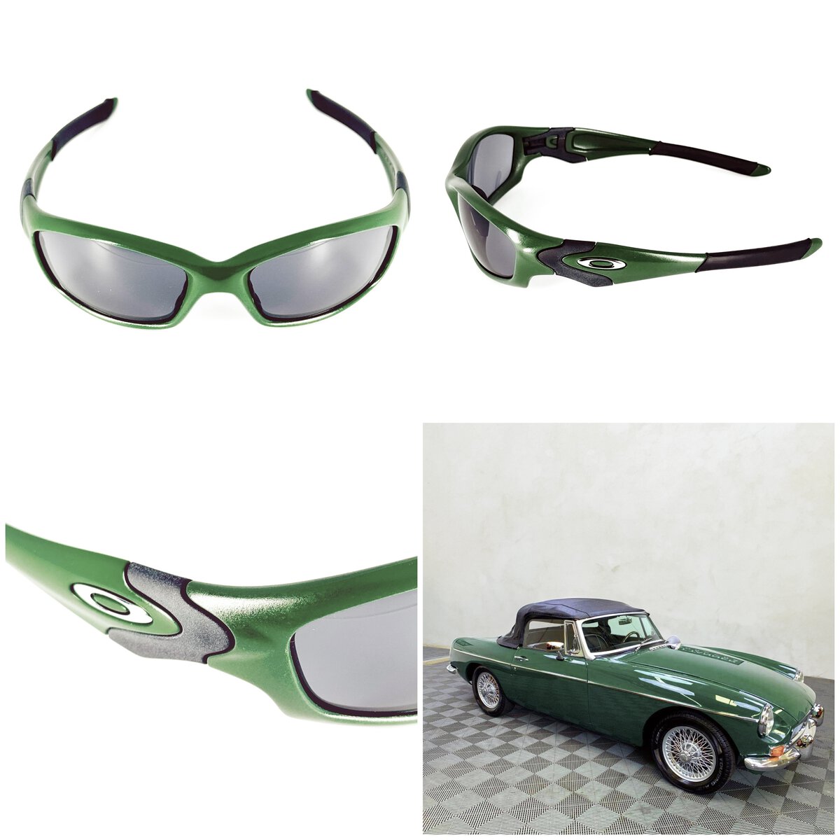 I'm actually digging this color scheme.SpecialAdvisor New Straight Jacket II MK. 1. MGB homage custom (I had one back in 1986 looked just like this): Tamiya Racing Green, with Tamiya Matte Black Lugs, and Chrome Icons. Unidentified Black Lenses.