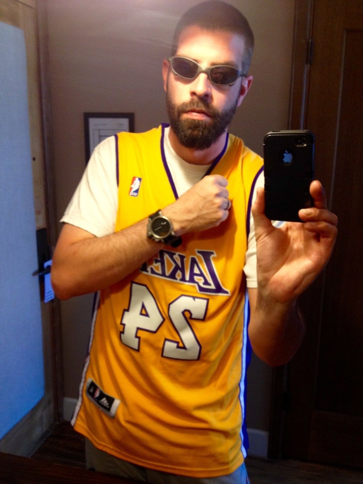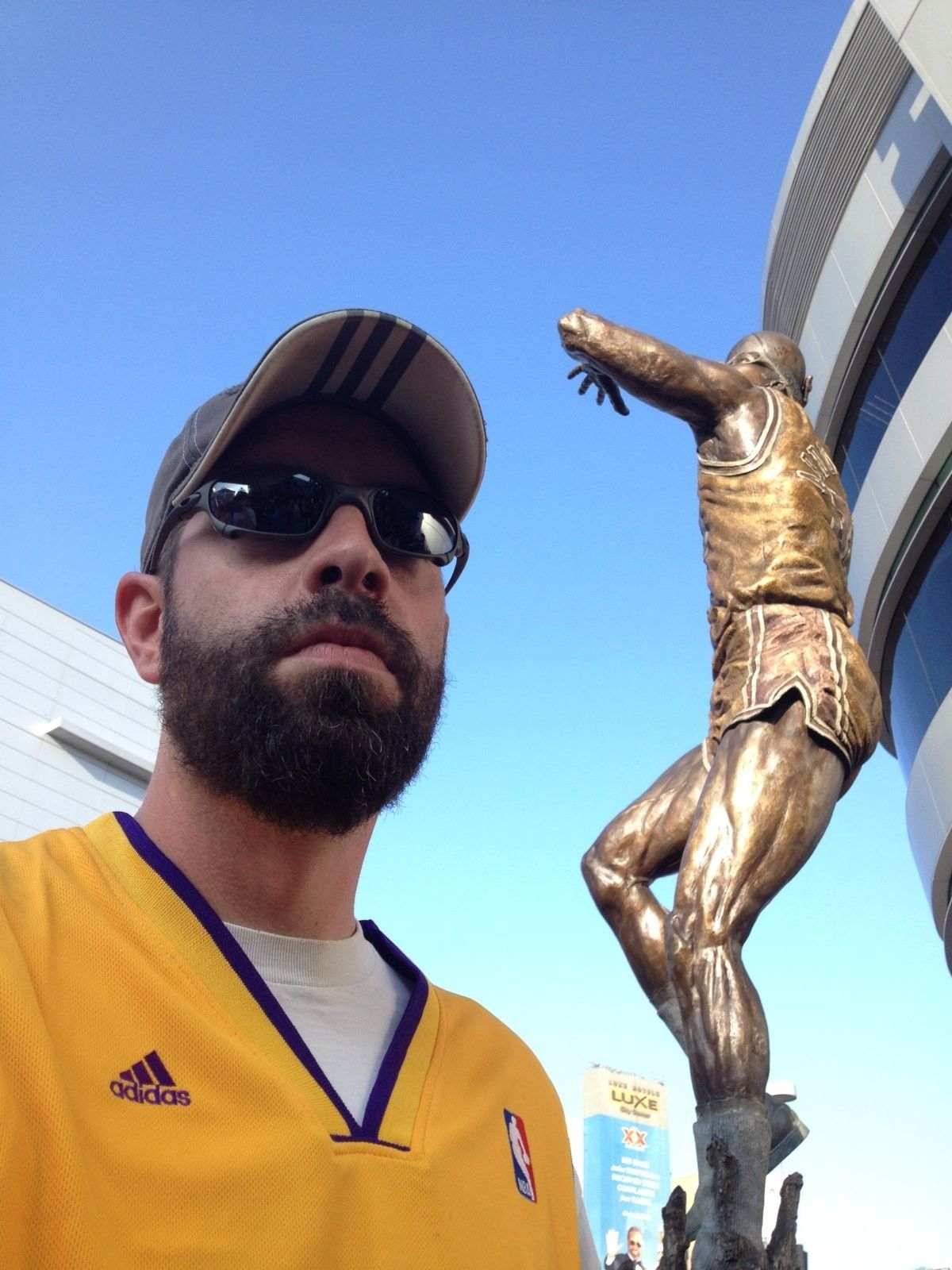 You'd think that going for the rock star look would cheer up the grumpy bald man.