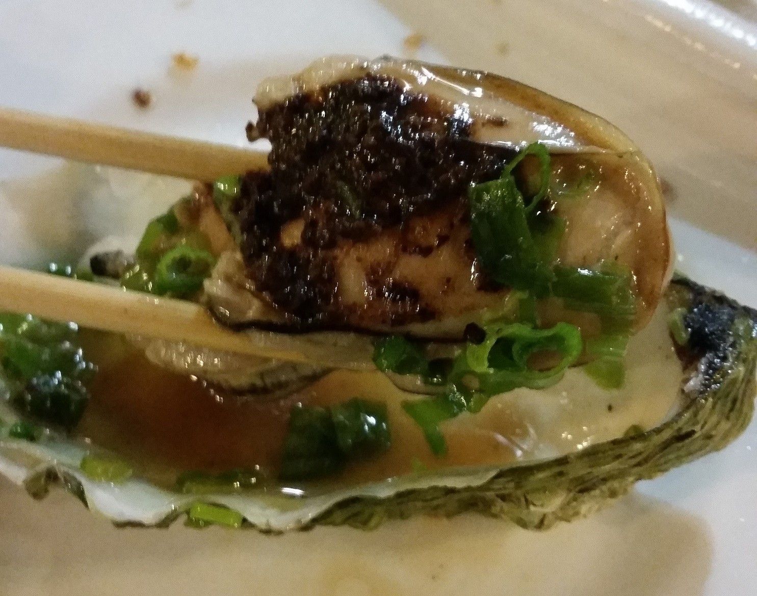 Some honkin' big oysters steamed in black bean sauce, were live when ordered: