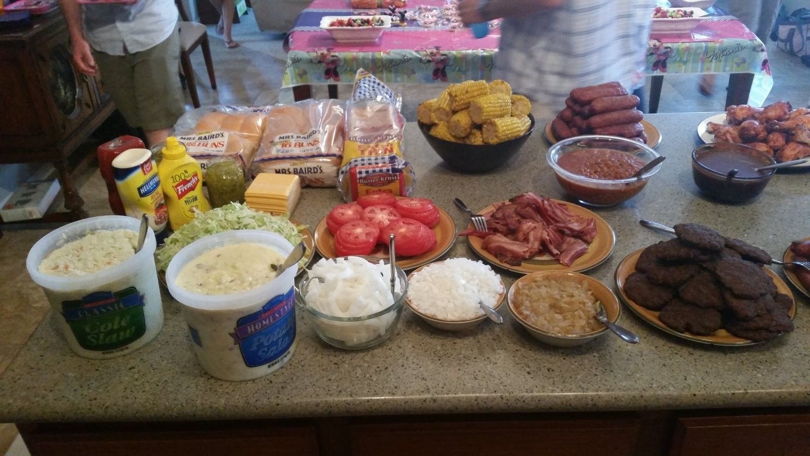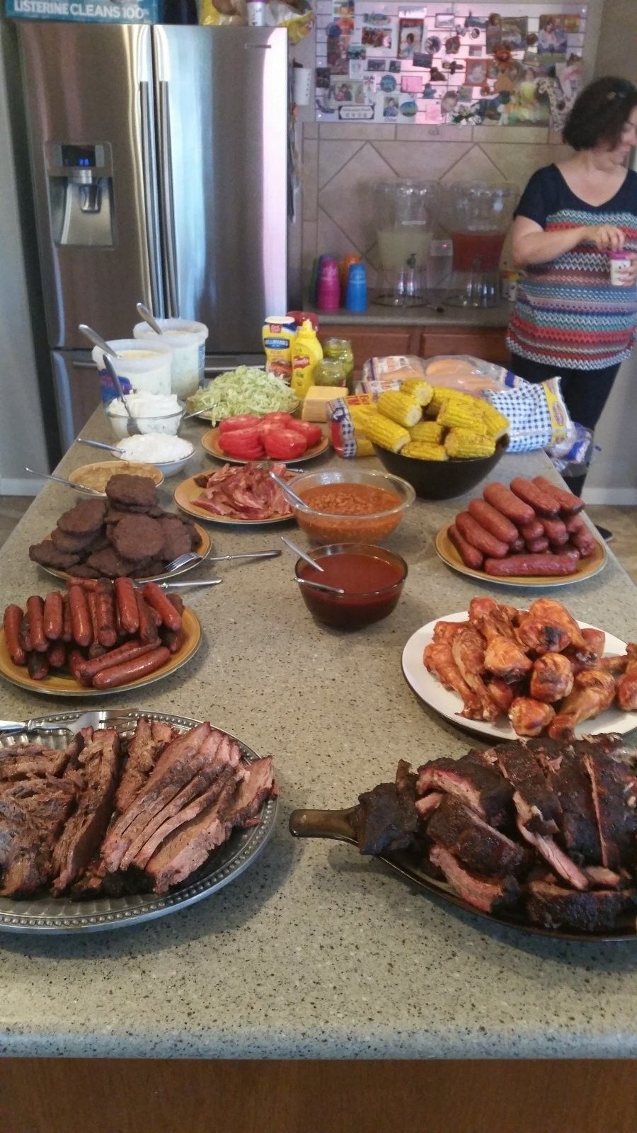I try to cook enough that it's unlikely we'll run out of any particular thing; everybody gets a shot at everything. So I plan on there being leftovers. There weren't as many as I expected; everything got a pretty good ding in it, with the brisket and ribs mostly gone.